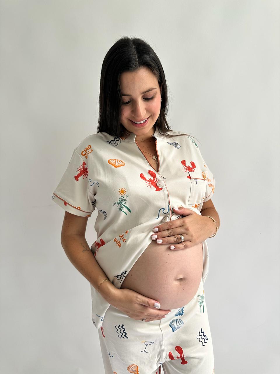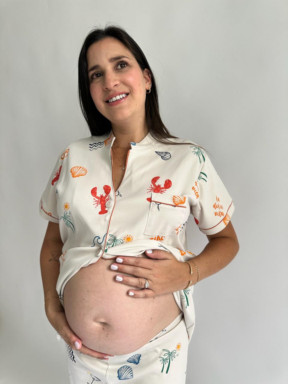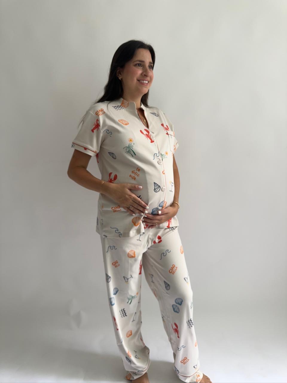 Nuestro print Dolce Vita en versión camisa y pantalón. Un conjunto ligero y cómodo, ideal para los días de verano. Perfecto para acompañar a mamá desde las noches cálidas hasta las mañanas tranquilas en casa, siempre con un look relajado y especial. 💗
