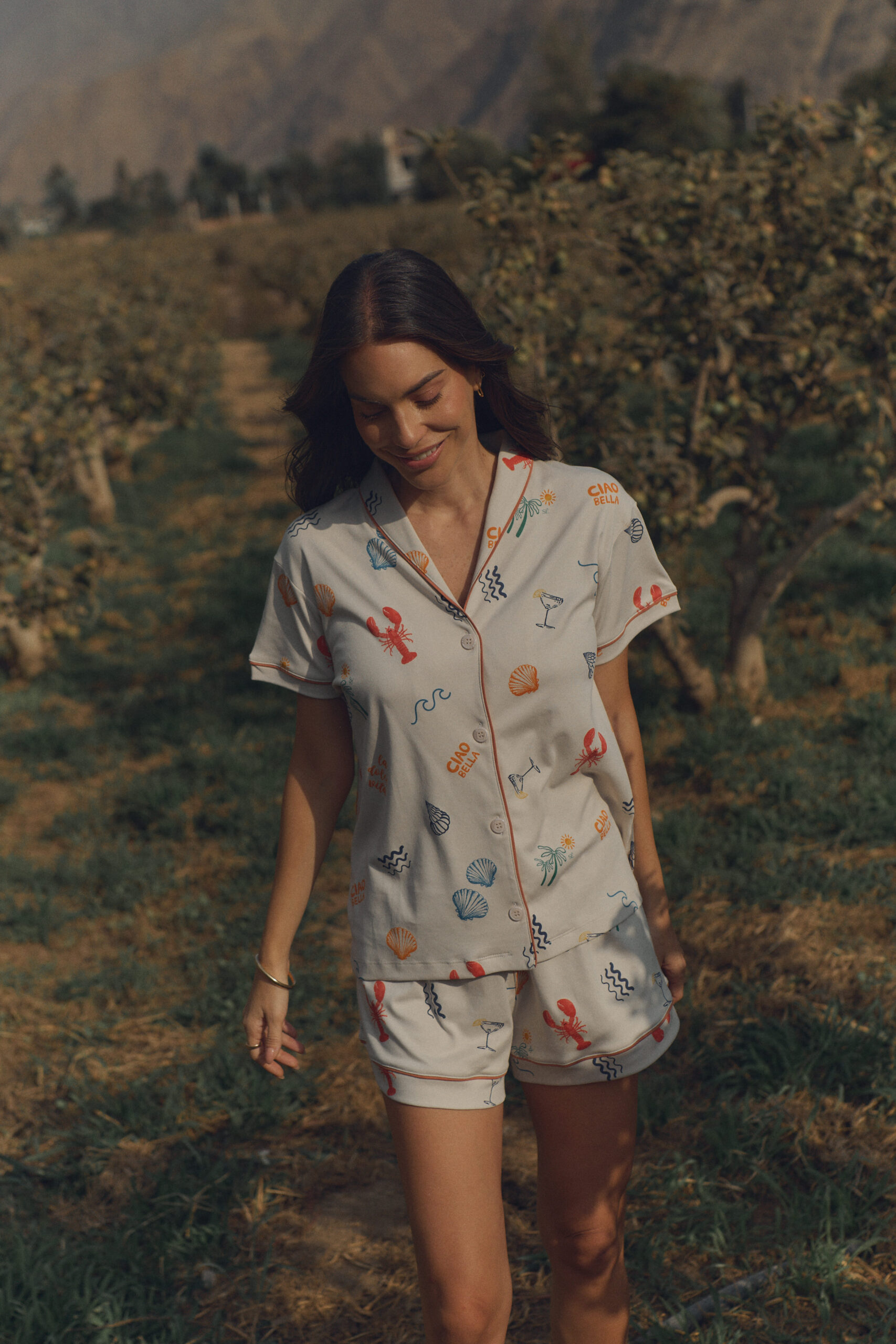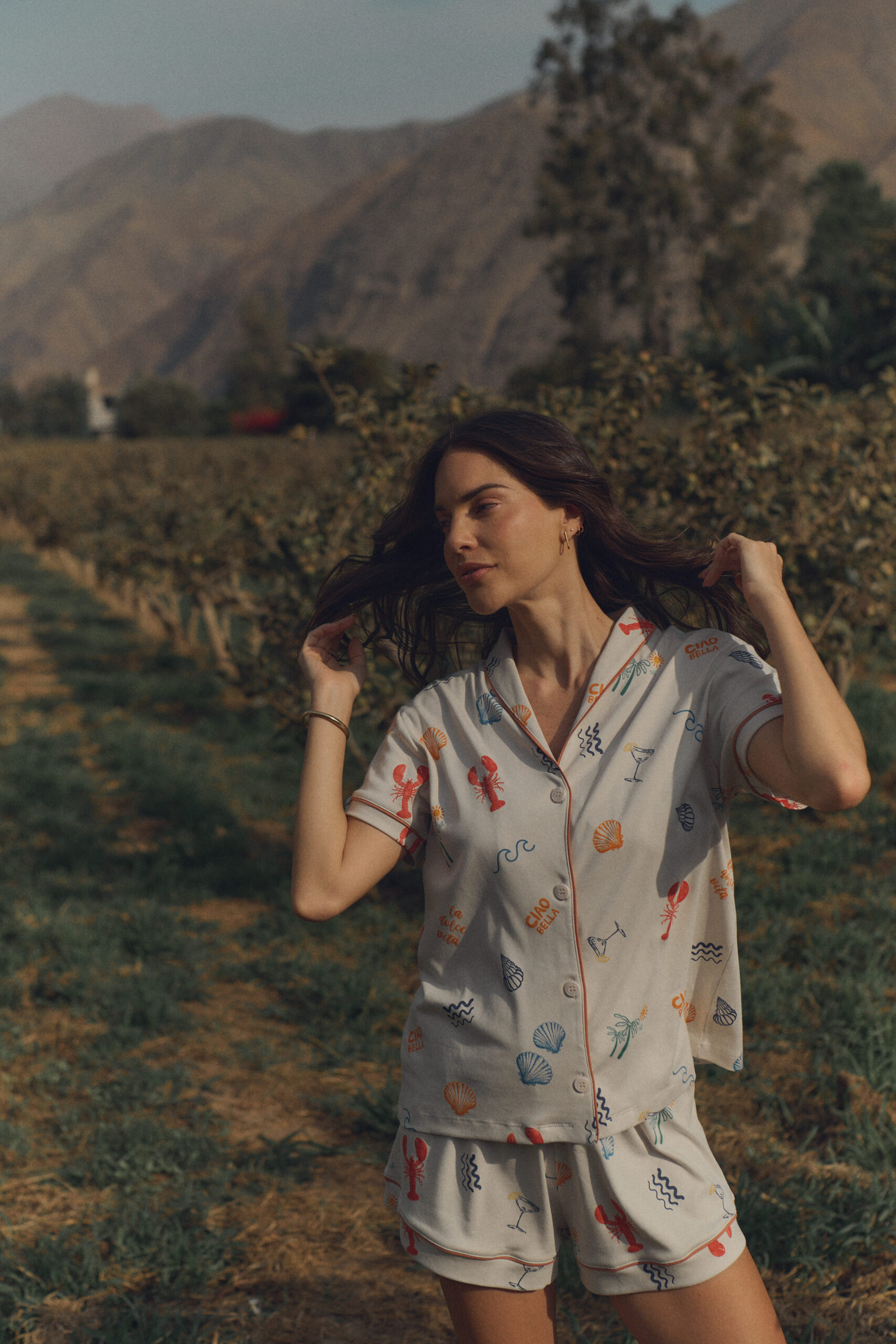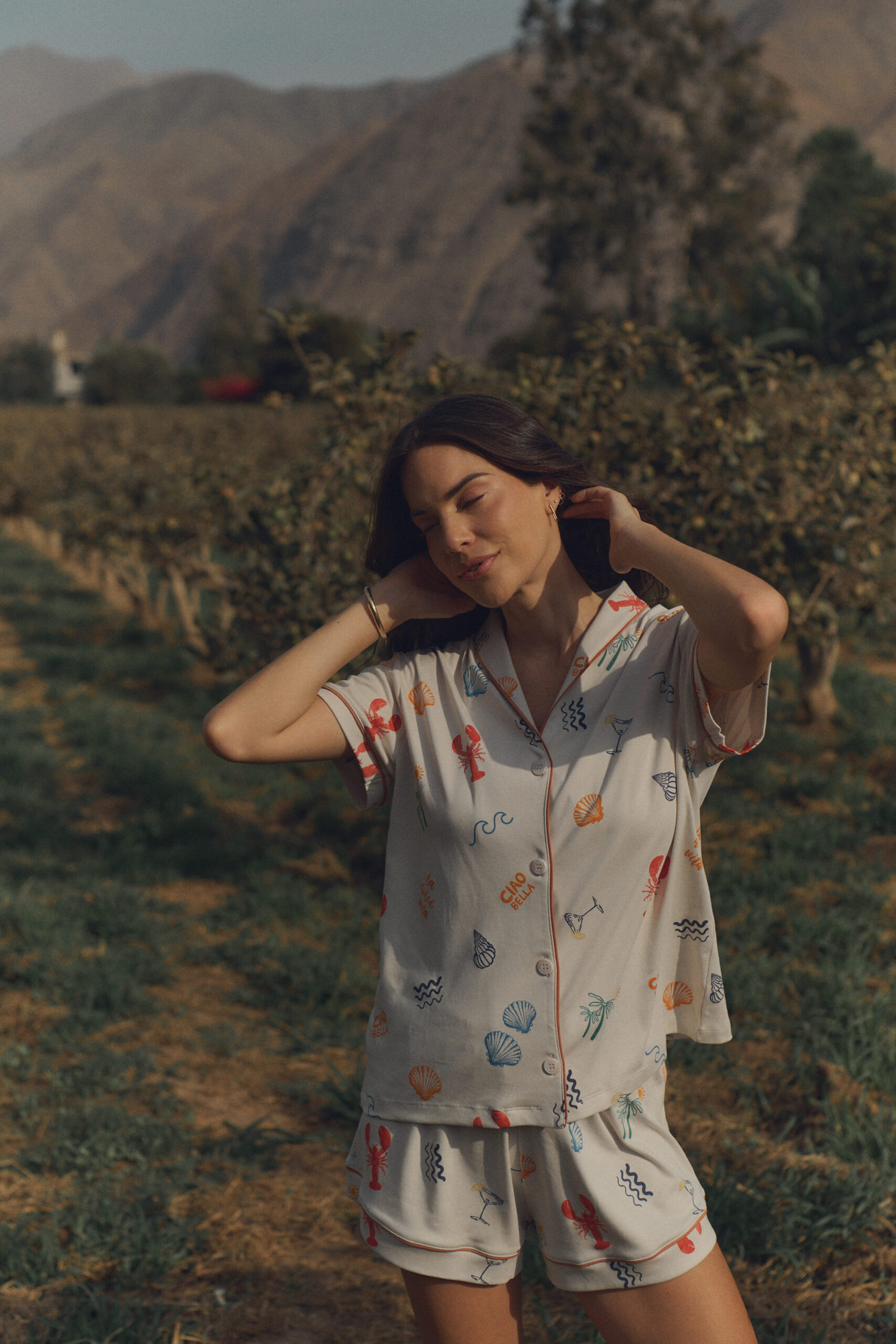 Un pijama con estampado de inspiración italiana y el mensaje Dolce Vita que marca el concepto de la colección. Suave, cómoda y pensada para disfrutar los pequeños momentos en casa, es ese pijama que se siente especial desde el primer uso y acompaña tus días con estilo sin esfuerzo.