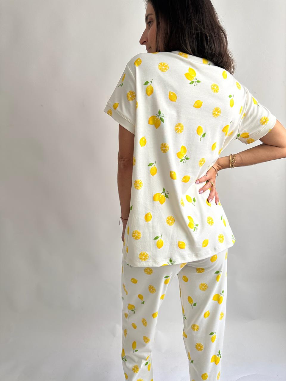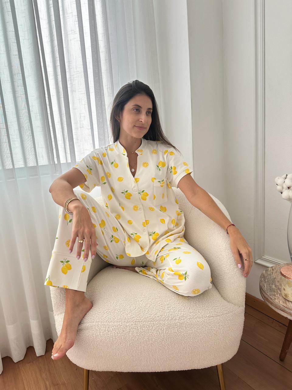 Con su diseño de limones, aporta frescura y alegría, perfecta para estar cómoda sin perder estilo.