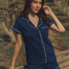 ¡La pijama que no te puede faltar este verano! Summer Blues está hecha del algodón pima más suave y fresco, perfecta para este cambio de estación. Además, pasa por un proceso extra de suavidad, para que sea aún más suave al tacto, ¡perfecto para ayudarte a dormir y descansar mejor!