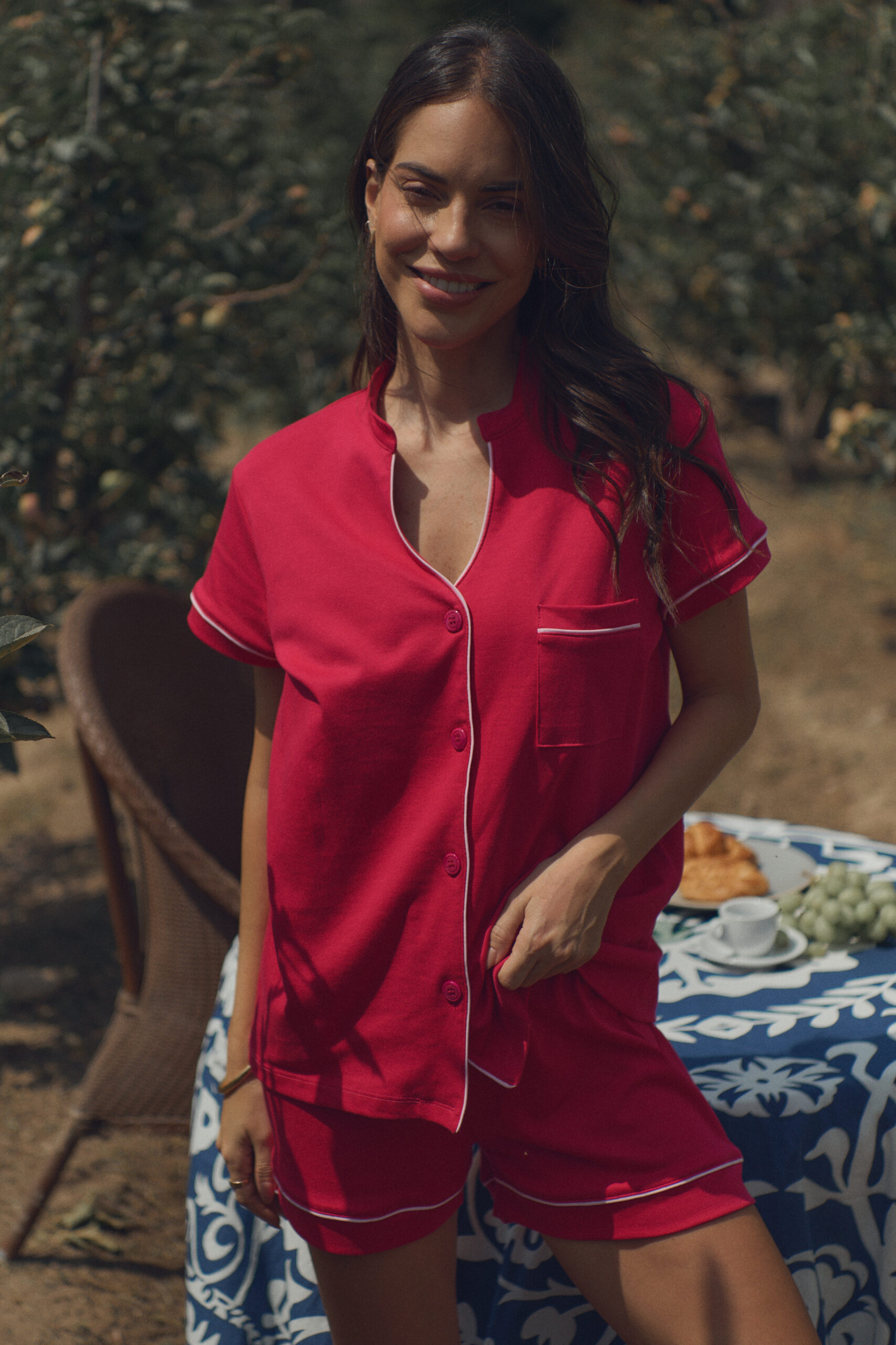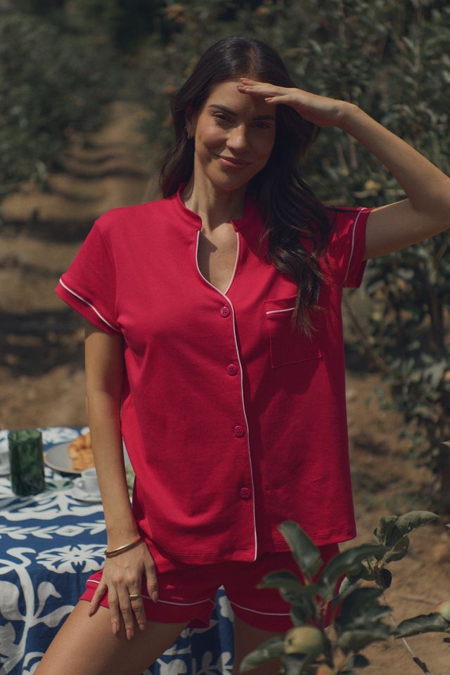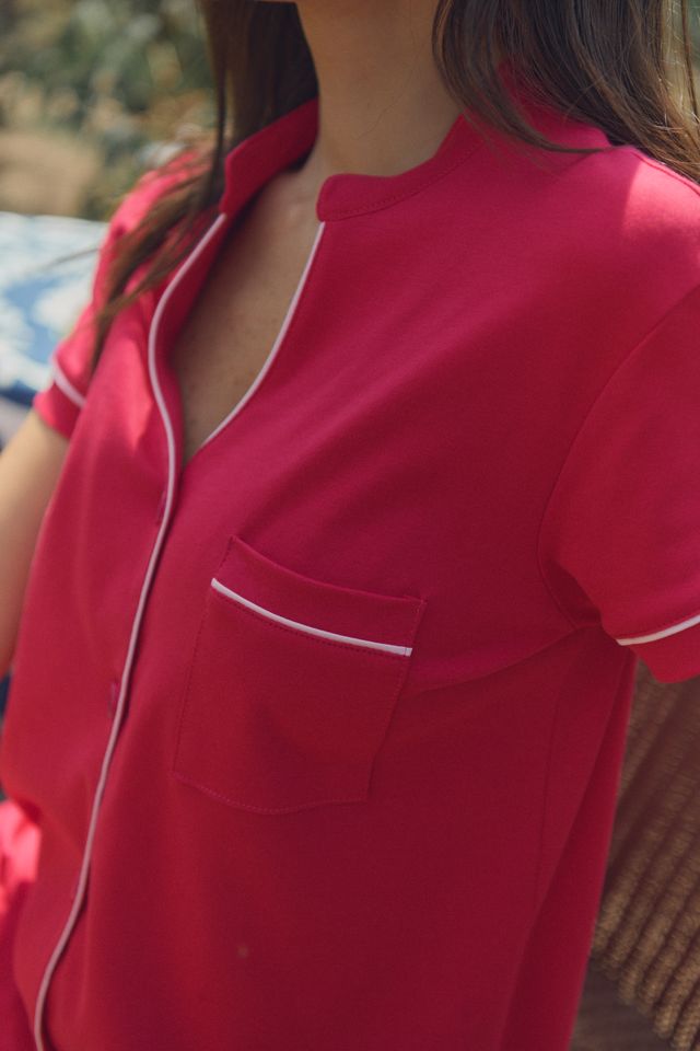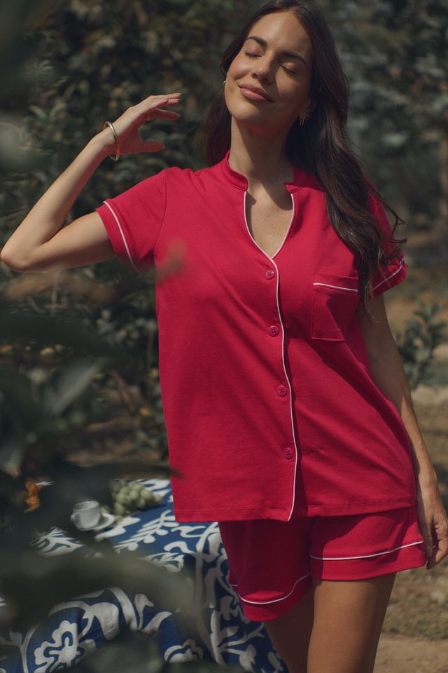 🍓 Nuestra pijama en un rojo berry intenso es pura vibra italiana con actitud. Hecha para sentirte cómoda y llena de energía, como un paseo por las callecitas de Roma al atardecer. Dulce, divertida y lista para tus noches de pijamada, risas y sueños que saben a dolce vita.