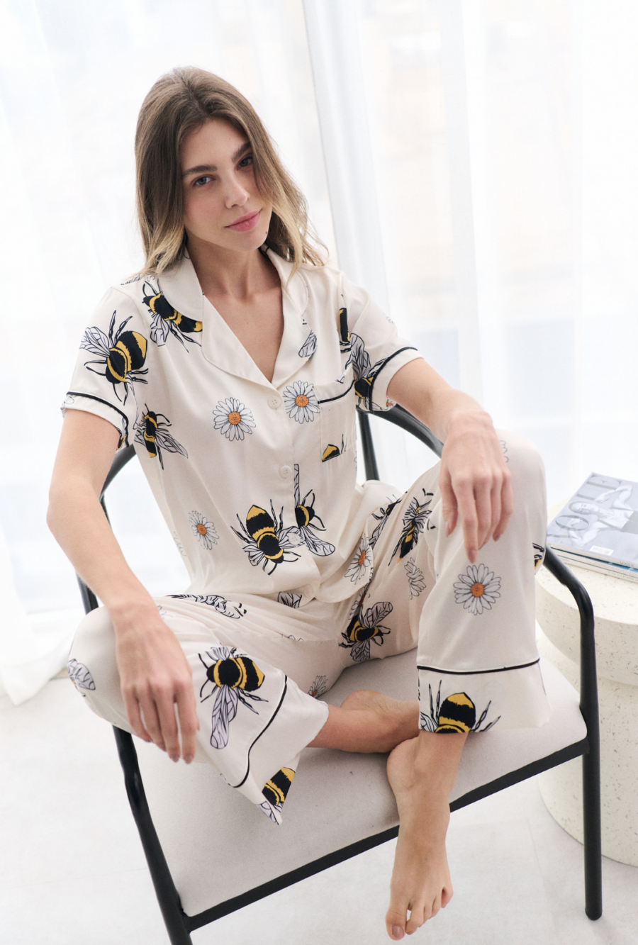 Nuestro print de abejas sobre fondo blanco llega en su versión de seda Simone 🐝