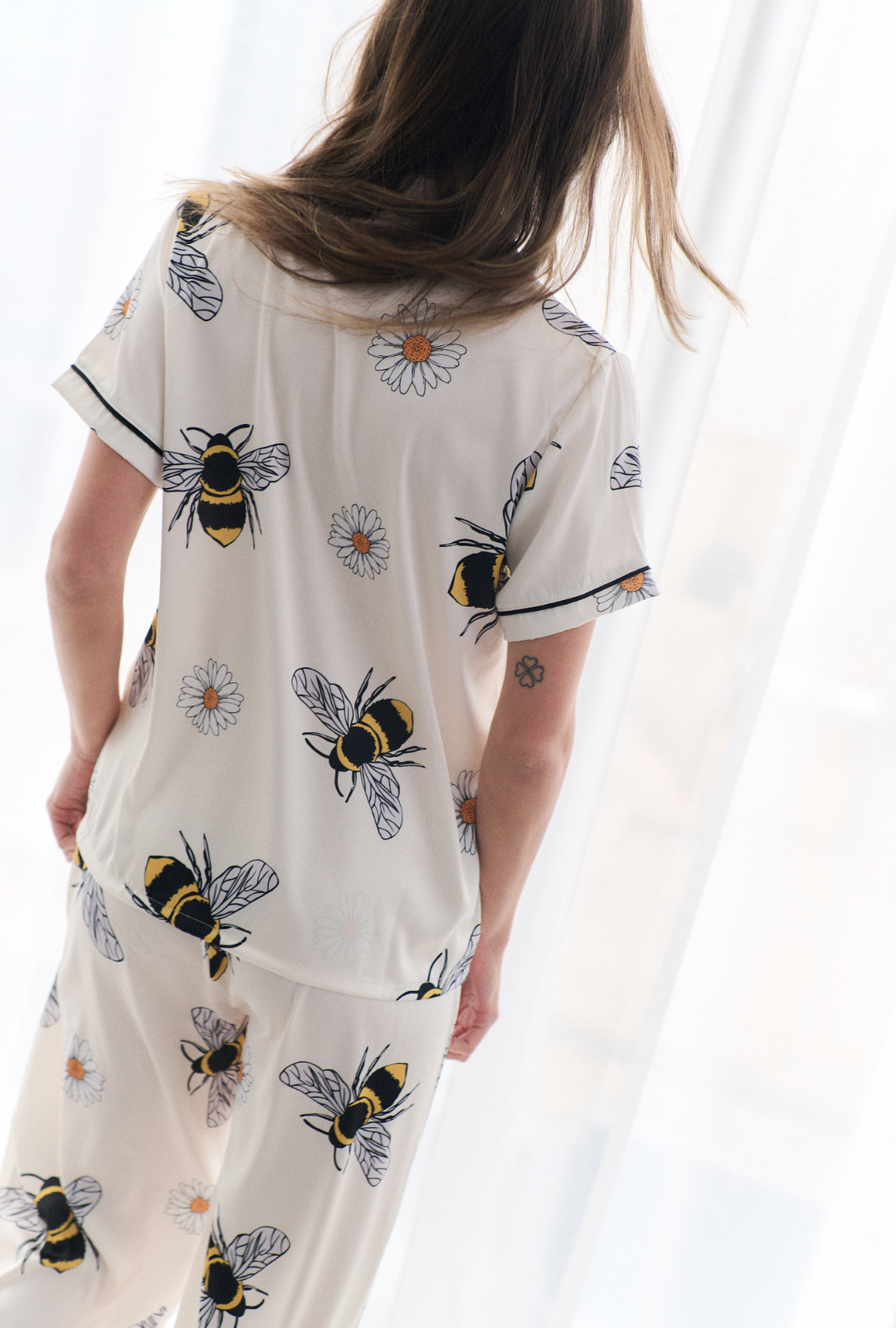 Un diseño delicado, fresco y lleno de encanto, perfecto para quienes aman los detalles sutiles pero especiales. La suavidad de la seda se combina con un fit cómodo y elegante, ideal para acompañarte en tus noches y mañanas con estilo.