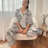 Pijama elaborada en tejido satinado sin maltrato animal.