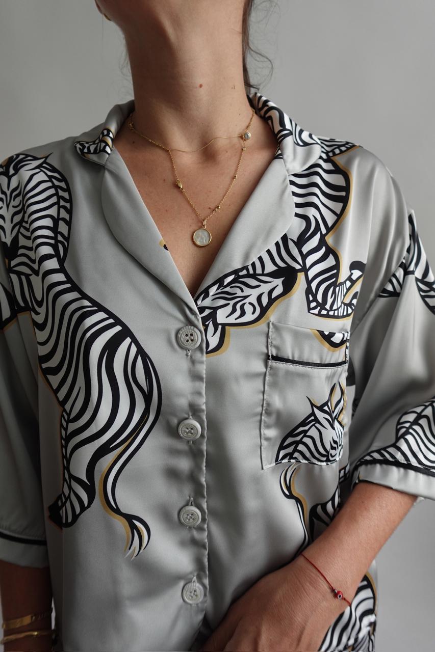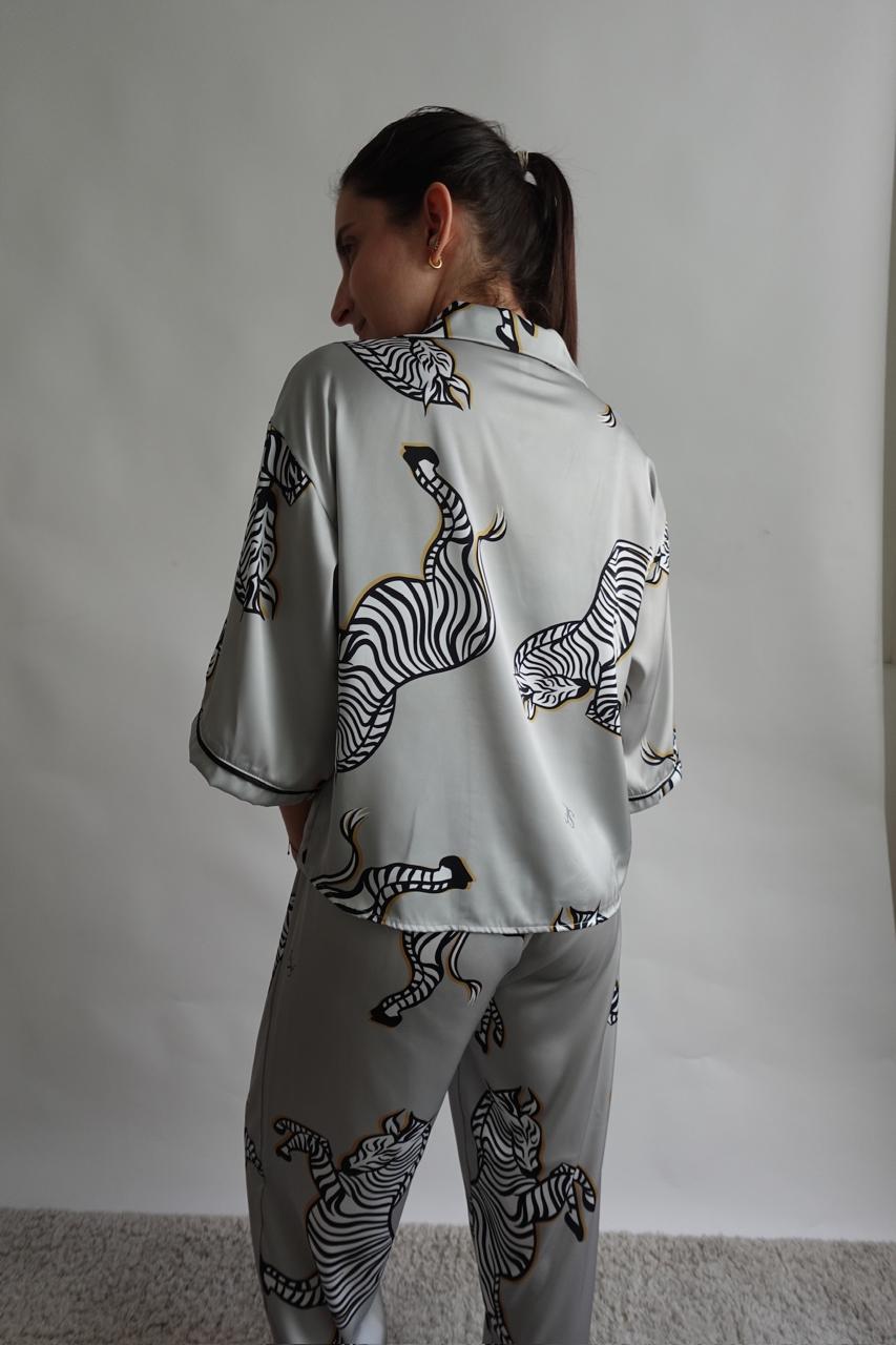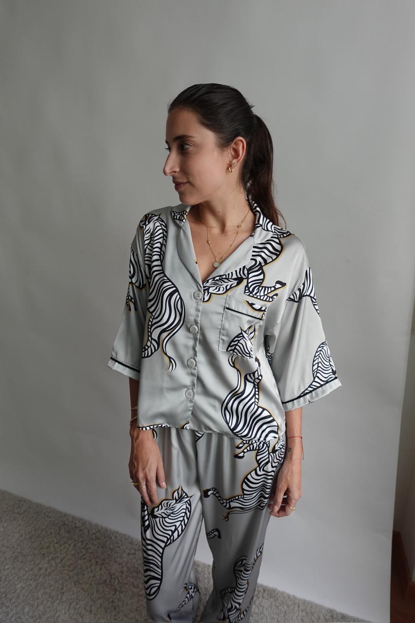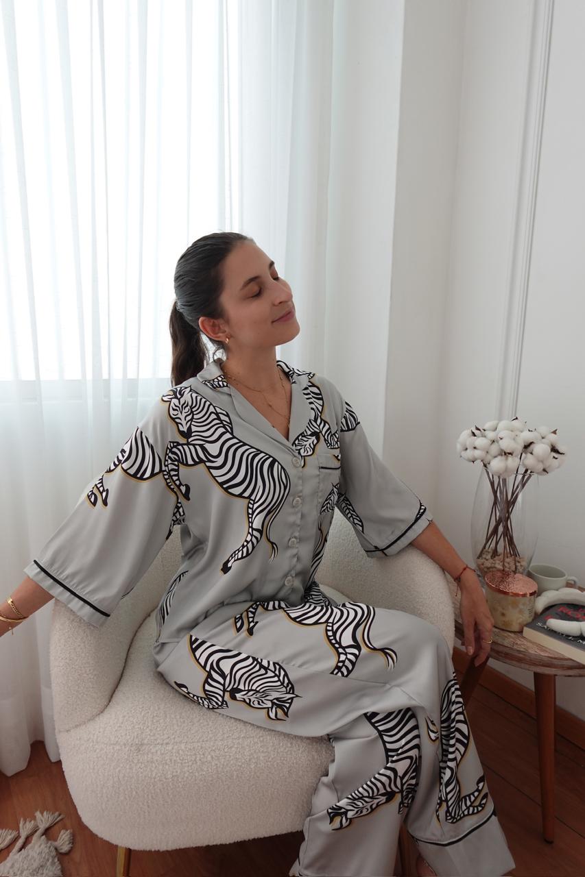 Nuestra pj de satinado suave, cómoda y consciente. Su estampado de zebras le da ese toque único y sofisticado.