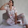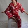 Pijama elaborada en tejido satinado sin maltrato animal.
