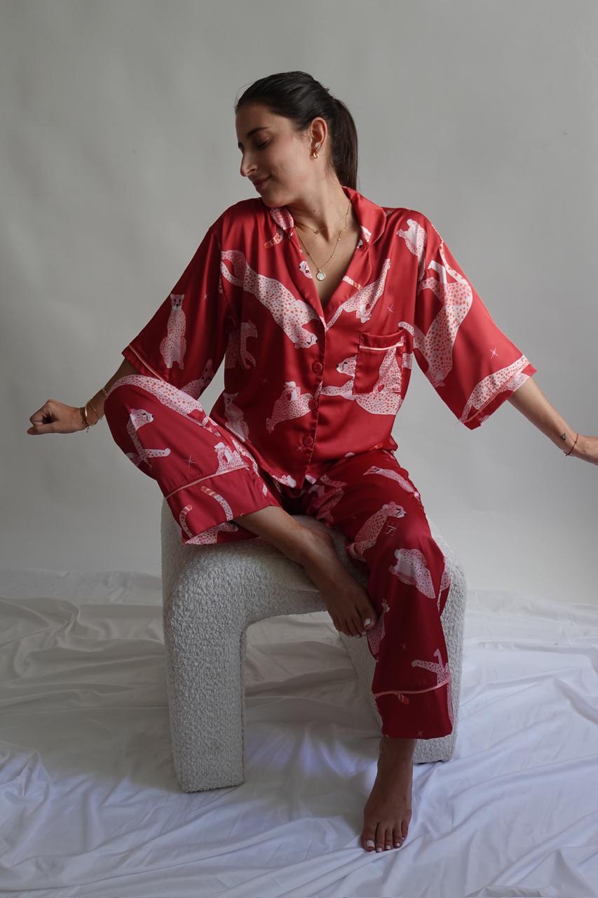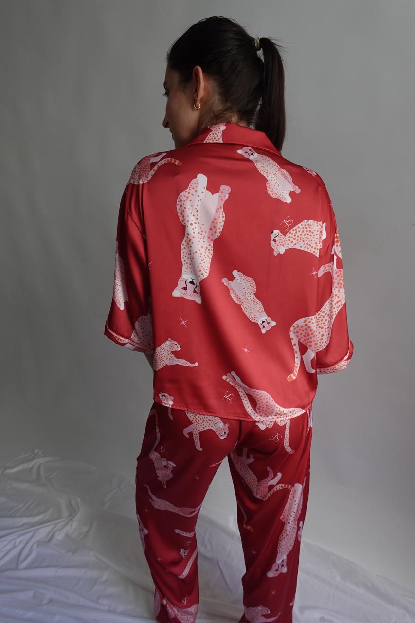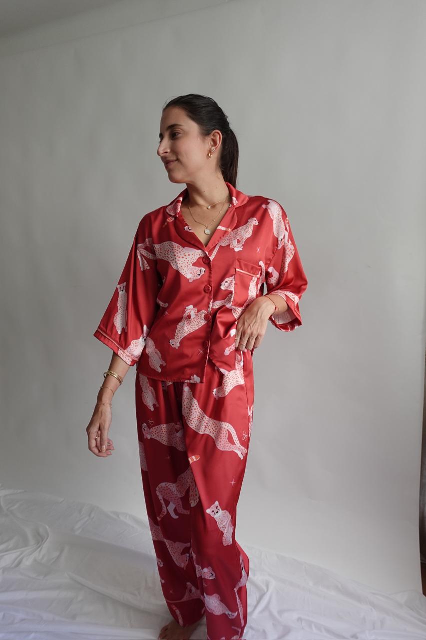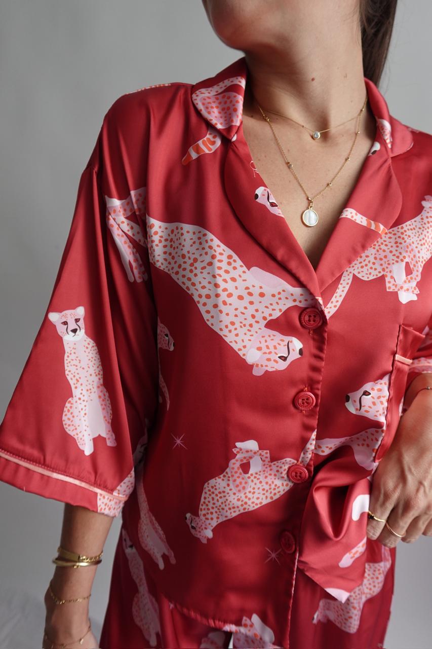 Wild Cherry 🍒 Nuestra pj de satinado suave, cómoda y con full actitud. Su estampado de guepardos le da ese toque audaz y sofisticado.
