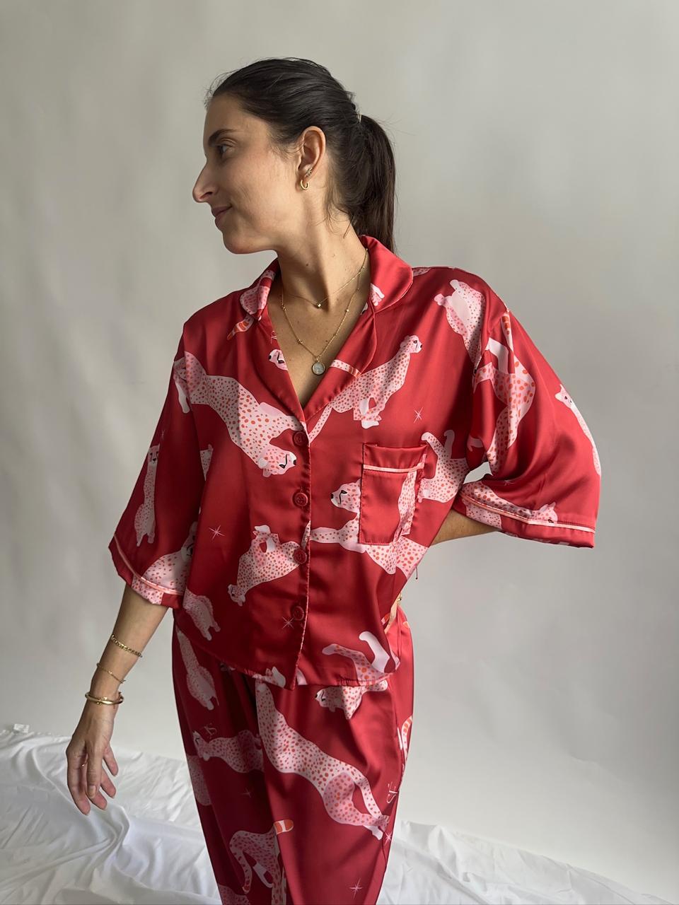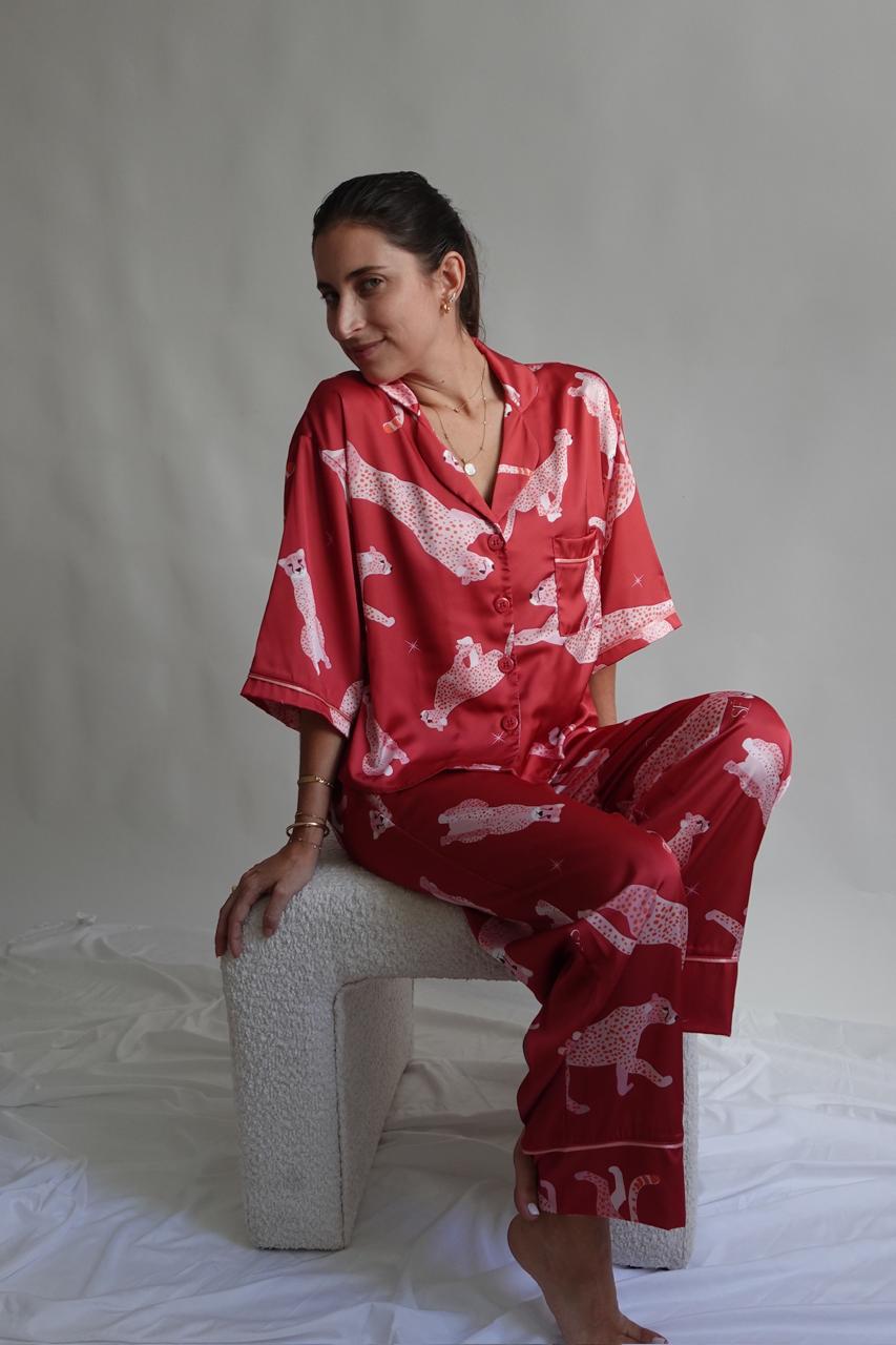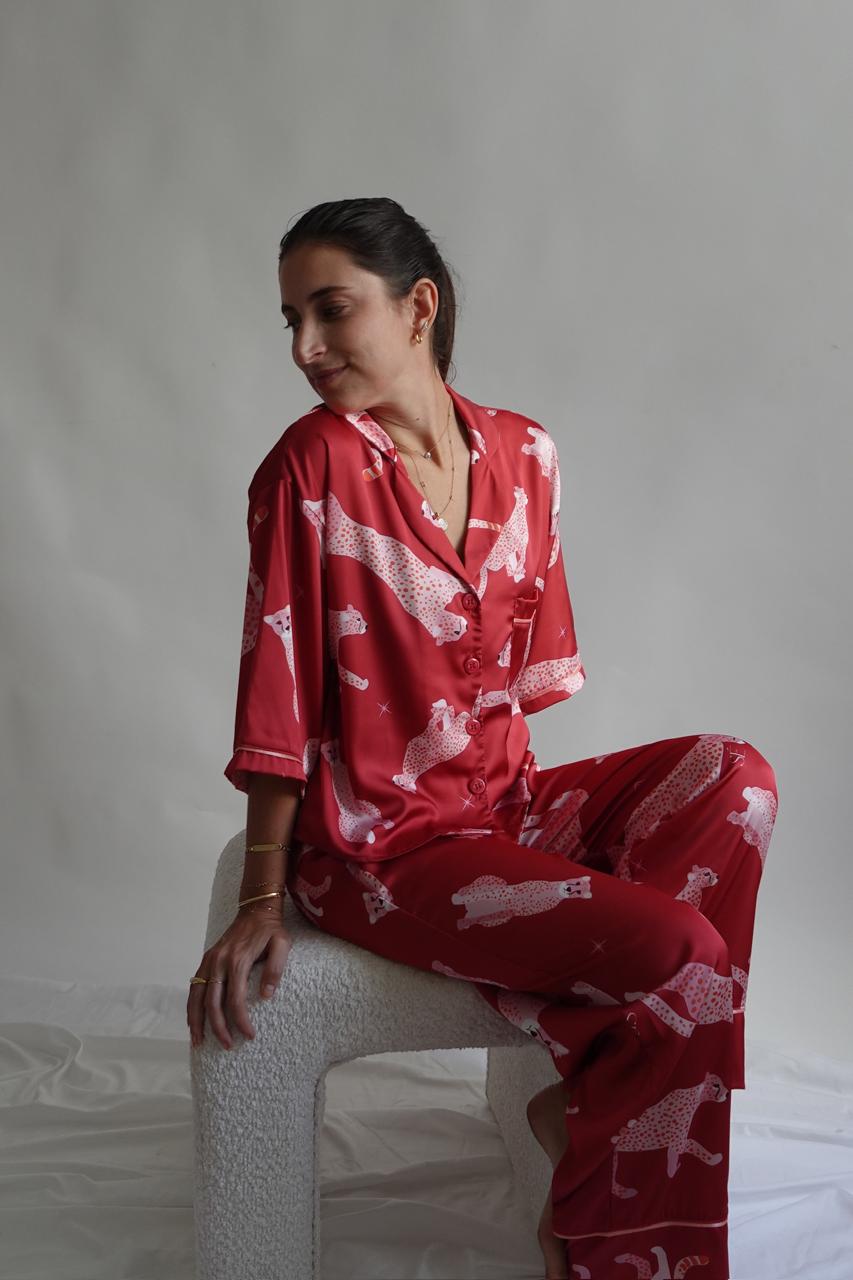 Wild Cherry 🍒 Nuestra pj de satinado suave, cómoda y con full actitud. Su estampado de guepardos le da ese toque audaz y sofisticado.