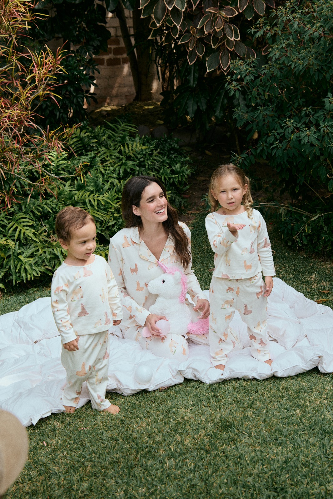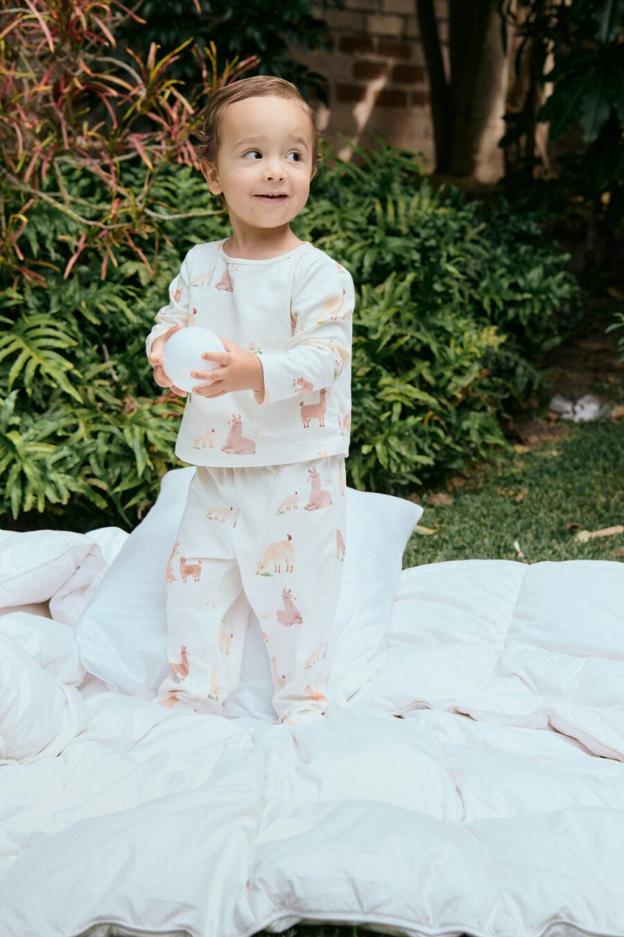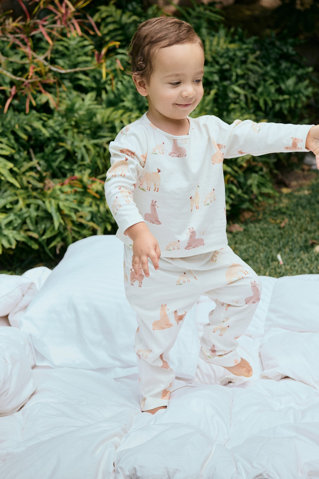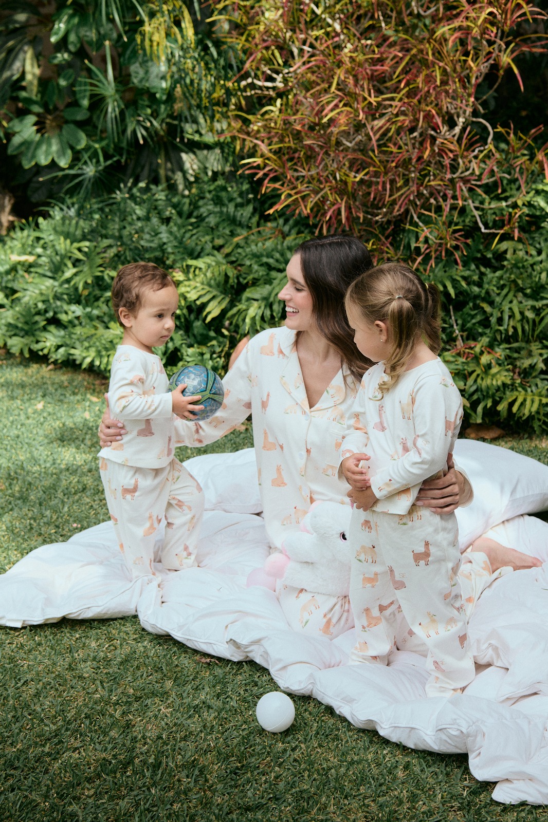Inspirada en la calidez de los Andes, esta pijama acompaña el descanso de los más pequeños con suavidad y comodidad. Su delicado estampado de llamas crea un mundo tierno y acogedor, perfecto para sus noches de descanso.