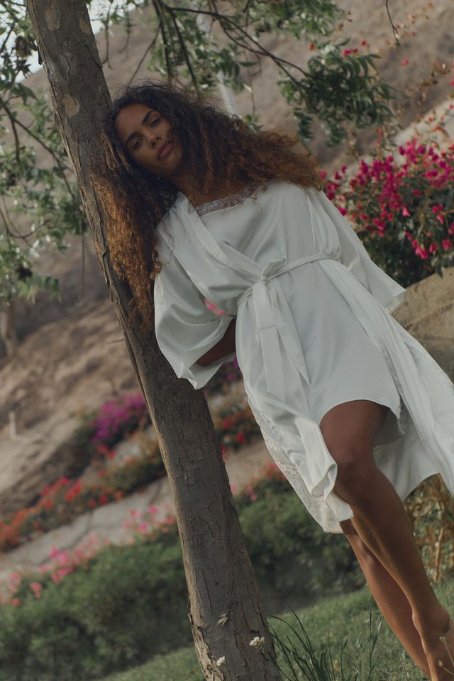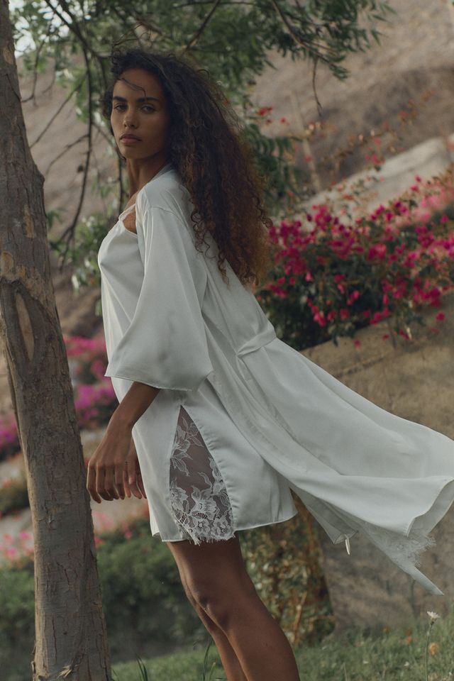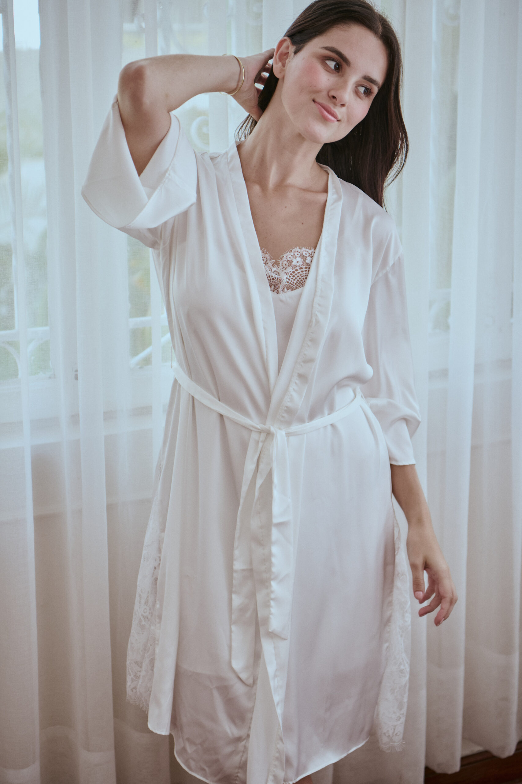 Muy emocionadas por presentarles nuestro “Bridal Silk Robe Short” elaborado cuidadosamente con los encajes más finos y la seda mas suave para que tu día empiece de manera inolvidable.